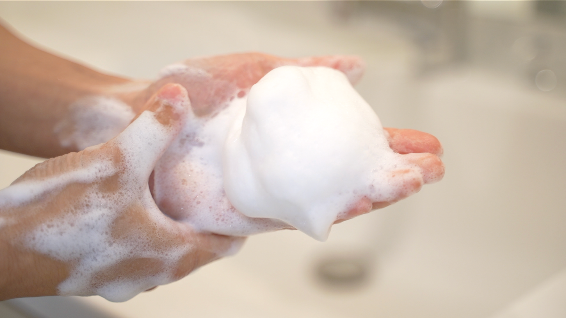 泡だけを手のひらに乗せ、顔や髪、全身を撫でるように優しく洗います。