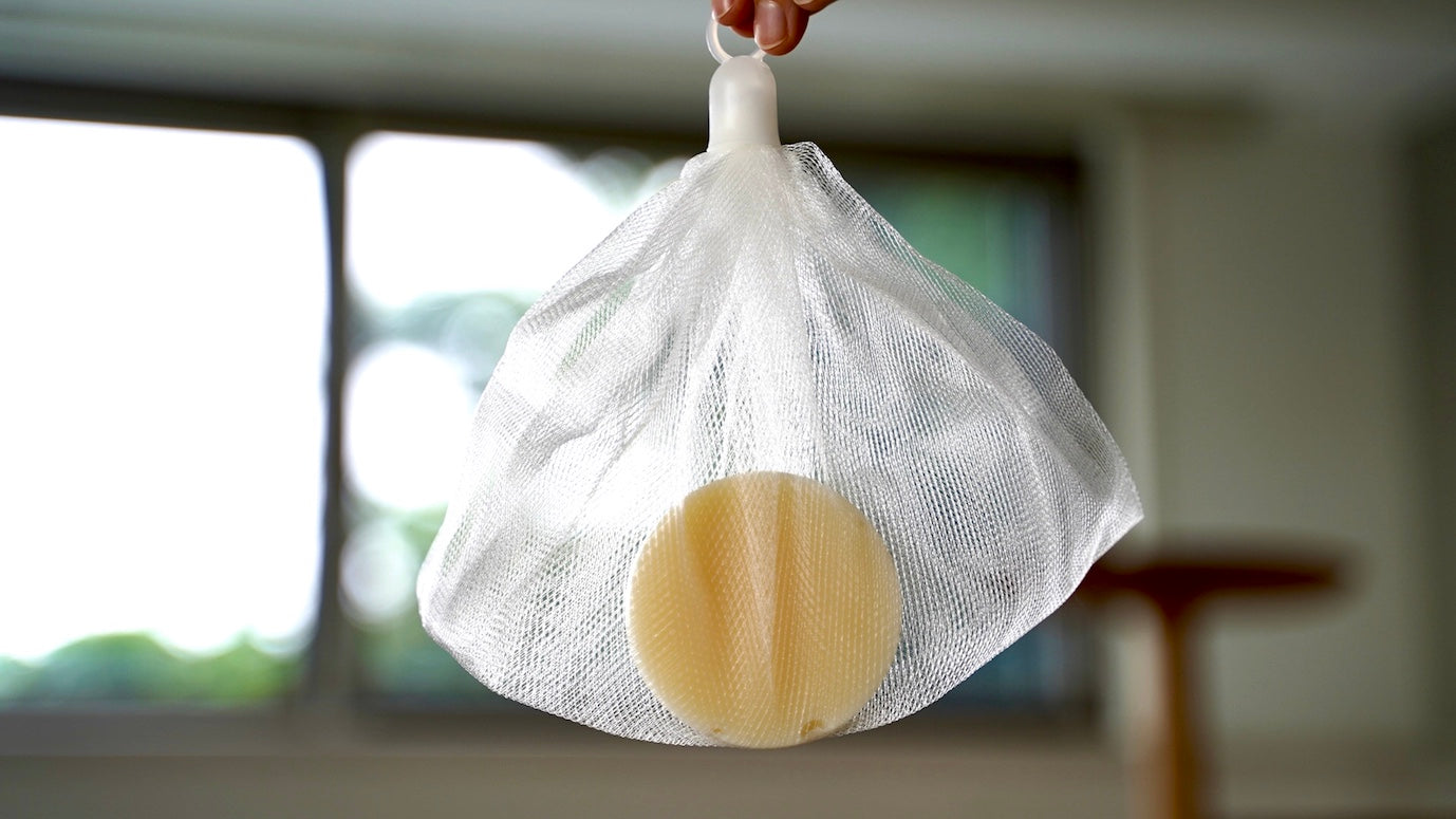 泡立てネットに入れて吊るし、よく水を切って保管してください。
